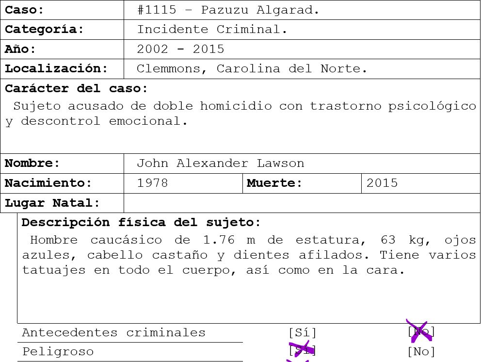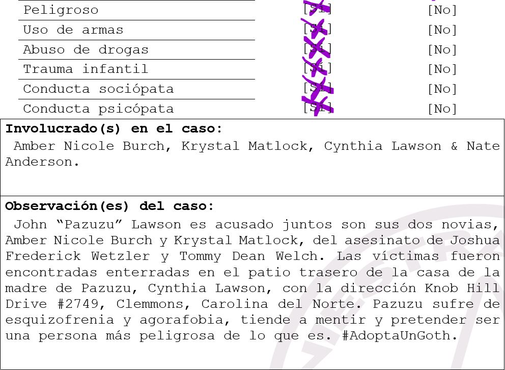 *Nota del investigador: caso #3013 – La Familia Manson, caso #4330 – Anton Szandor LaVey, caso #0666 – Aleister Crowly.
