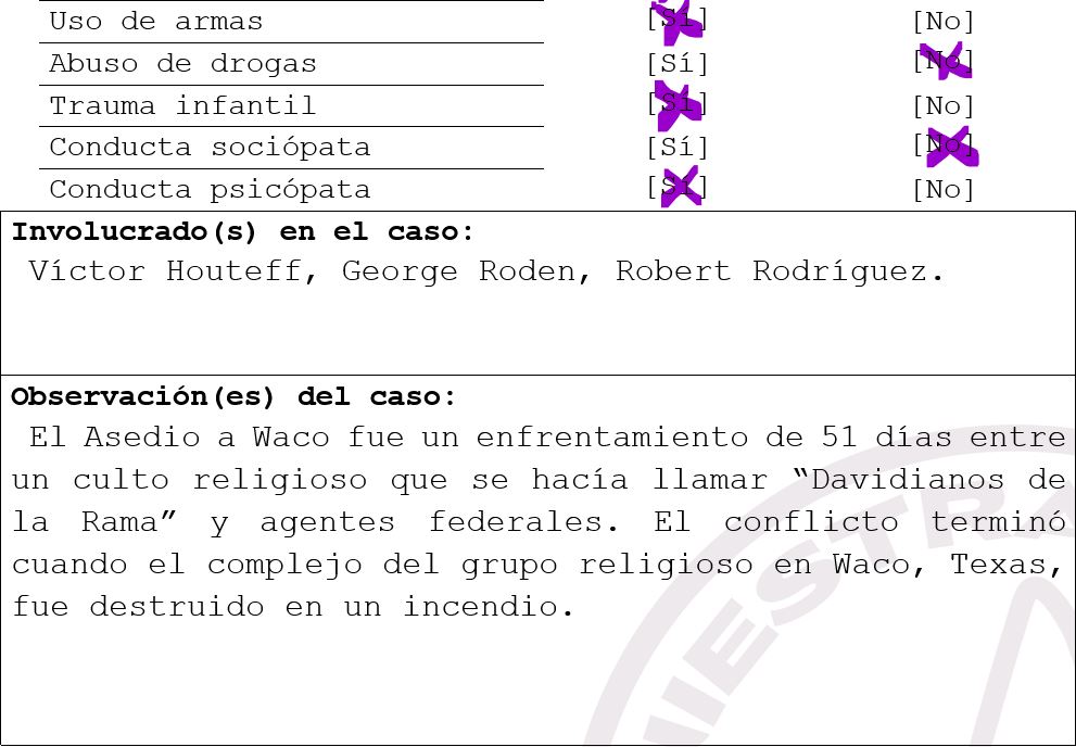 2) Un testimonio escrito de un ex residente del complejo, alegando que Koresh le había dicho que el tráfico de drogas era una forma rápida de recaudar dinero.