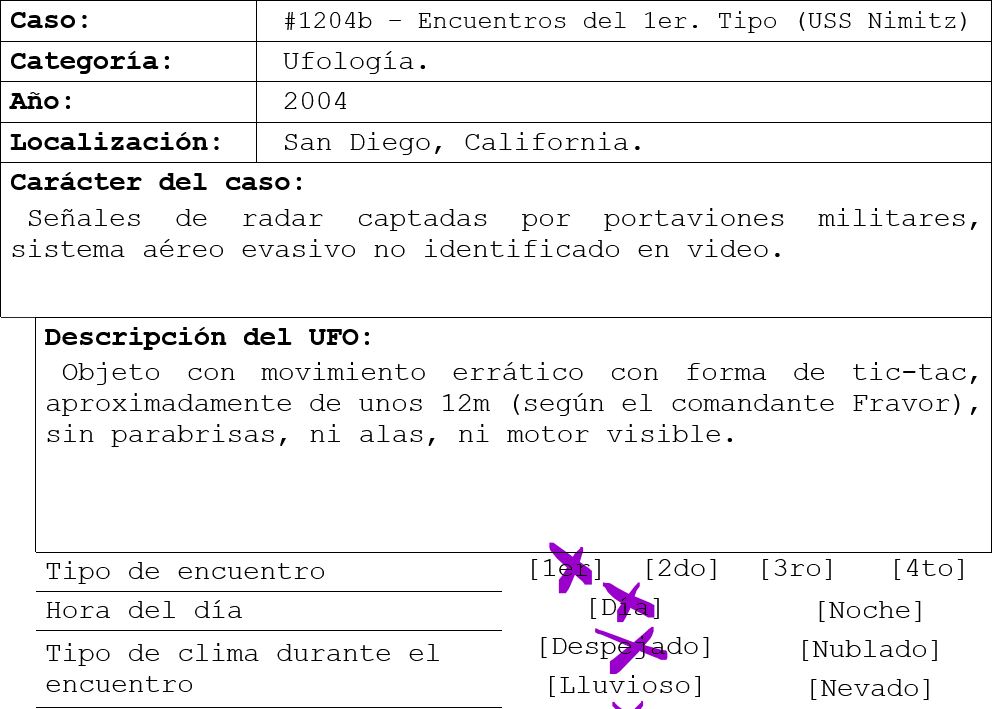 *Nota personal del investigador: Encuentro cercano del 1er tipo – Avistamiento o rastreo de objetos voladores no identificados (platillos, luces, frecuencias por radio o señales de radar).