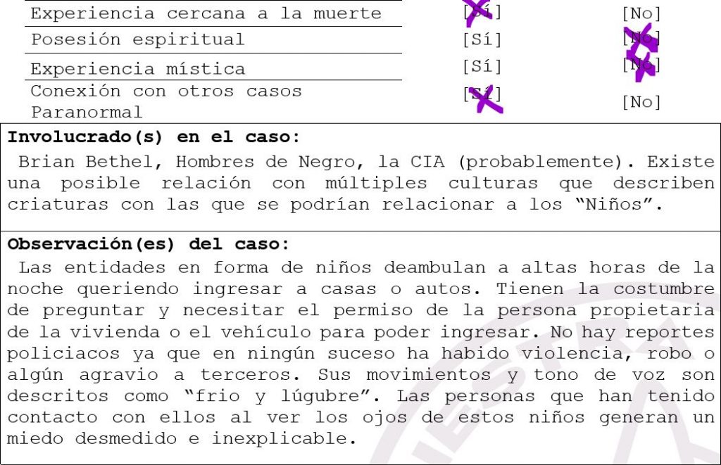 Volviendo a la hipótesis de que podrían ser estos seres níveos y cuál es su verdadero propósito, se dice que pueden estar en un plano espiritual diferente al de nosotros y que solo están al acecho de crear caos y desorden social. Pero al final nos encontramos que las historias que se cuentan de los Niños mencionan las mismas referencias y dicen una y otra vez el mismo consejo… ¡JAMAS LOS DEJES ENTRAR!