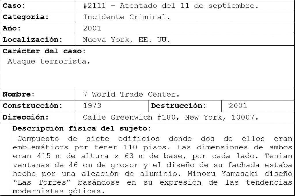Cuando finalmente los dos rascacielos más altos del mundo fueron consumidos por el fuego y ambos formaron dos enormes nubes de polvo, respectivamente, fueron imágenes que exponían el punto más débil de una nación, de “la más poderosa del mundo”. Mostraban como se formaba una enorme herida en todo un país y lo más impactante era que se trataba de Estados Unidos, un país de primer mundo, que se adjudicaba ser acreedor de “El Gran Sueño Americano”, las imágenes mostraban simplemente algo inimaginable.