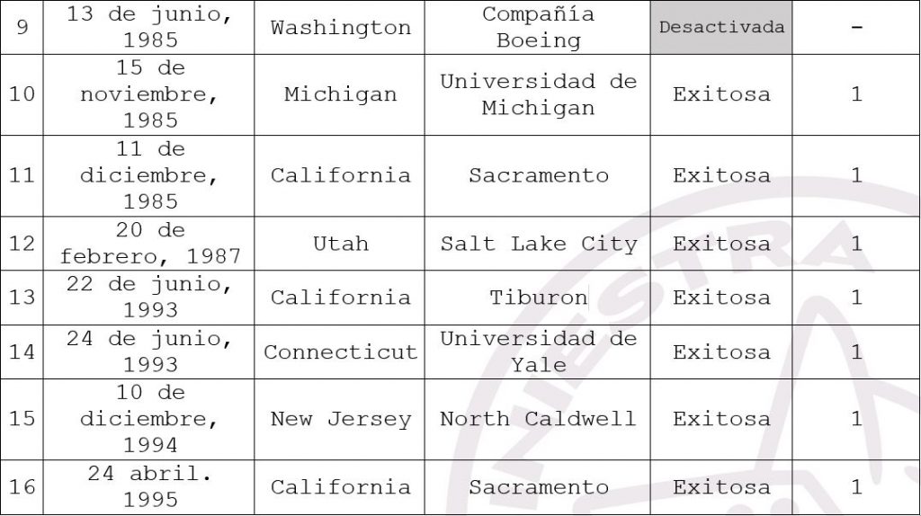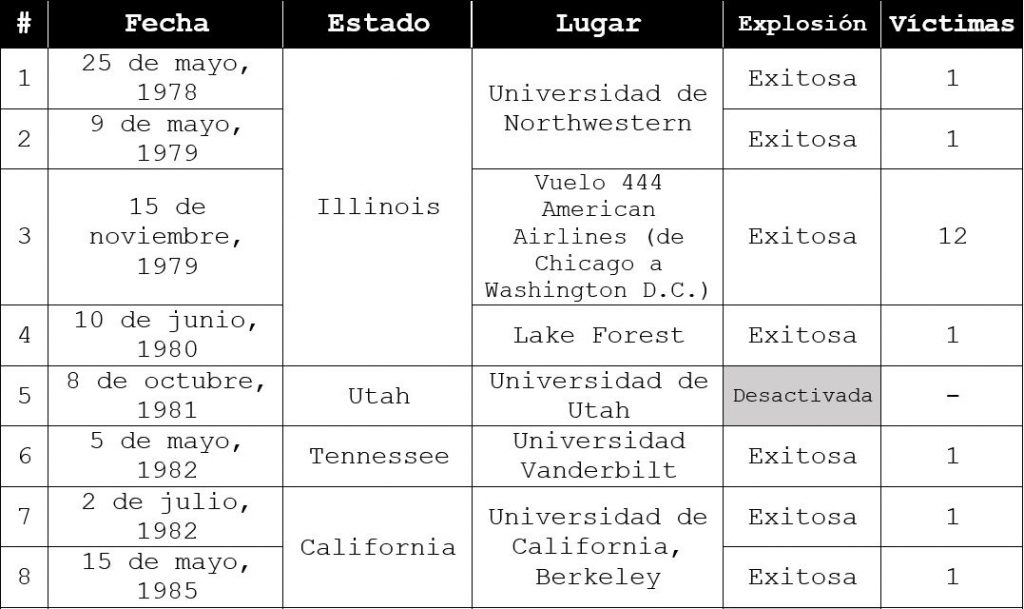 El Unabomber y sus atentados