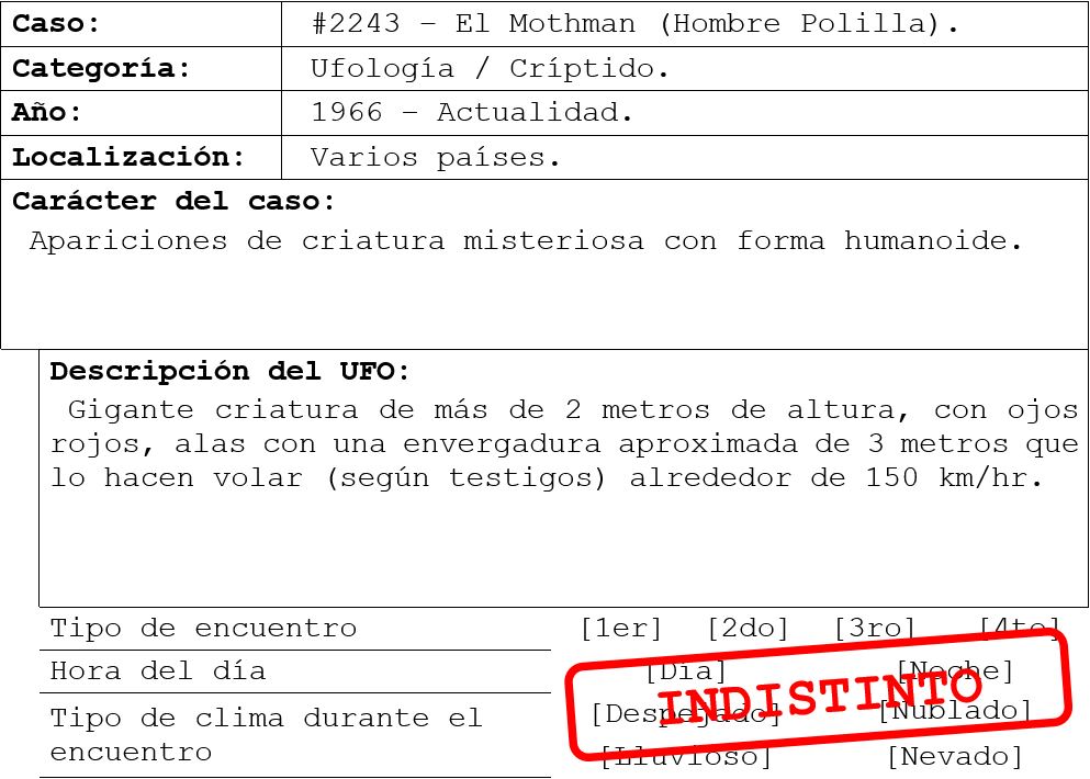 *Nota del investigador: caso #2080 – Incidente en Roswell.