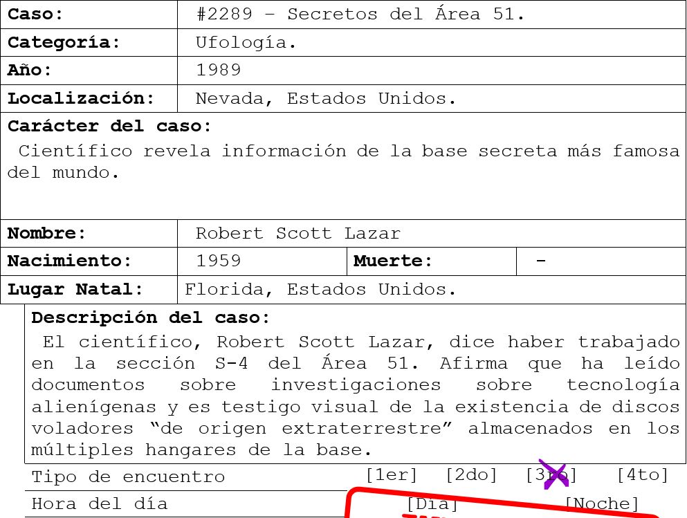 El 11 y 13 de noviembre de 1989, los televidentes de KLAS-TV en Las Vegas, escucharon una historia increíble del reportero de noticias George Knapp. Un científico se había presentado para revelar que el gobierno de los Estados Unidos posee los restos de vehículos extraterrestres y que de estos vehículos han surgido avances tecnológicos extraordinarios.