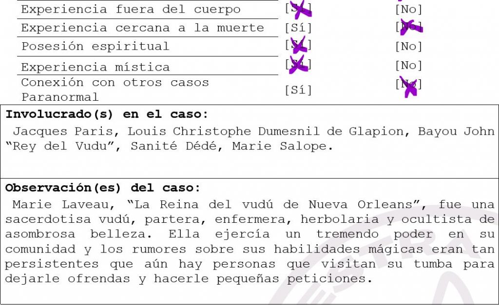 Los misterios que rodean a Marie Laveau comenzaron temprano en su vida. Según los informes, Jacques Paris desapareció y luego se informó que murió. Tras su desaparición, Laveau comenzó a referirse a sí misma como la “Viuda Paris”. La desaparición de sus dos primeras hijas es similar a la desaparición de Jacques. No hay documentación de su muerte.