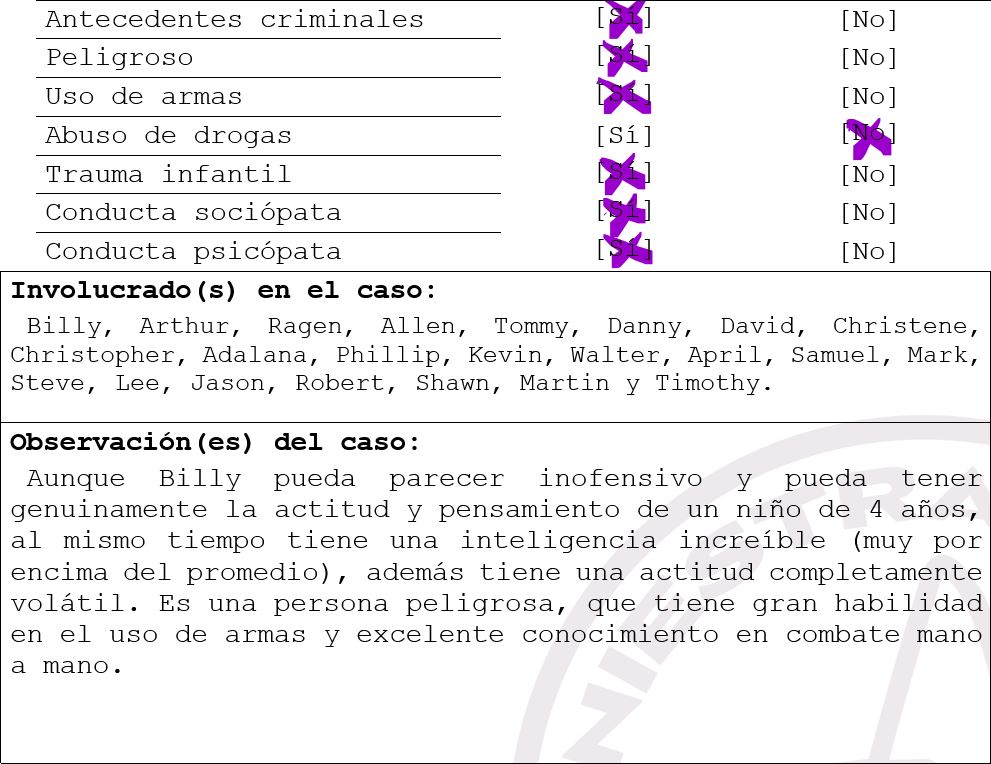20. Robert o Bobby (17 años). Era un soñador y aventurero. Fantaseaba con viajar por el mundo y arreglar problemas de cualquier índole llevando paz y conocimiento. Desafortunadamente sus ambiciones no eran compartidas con todas las personalidades.